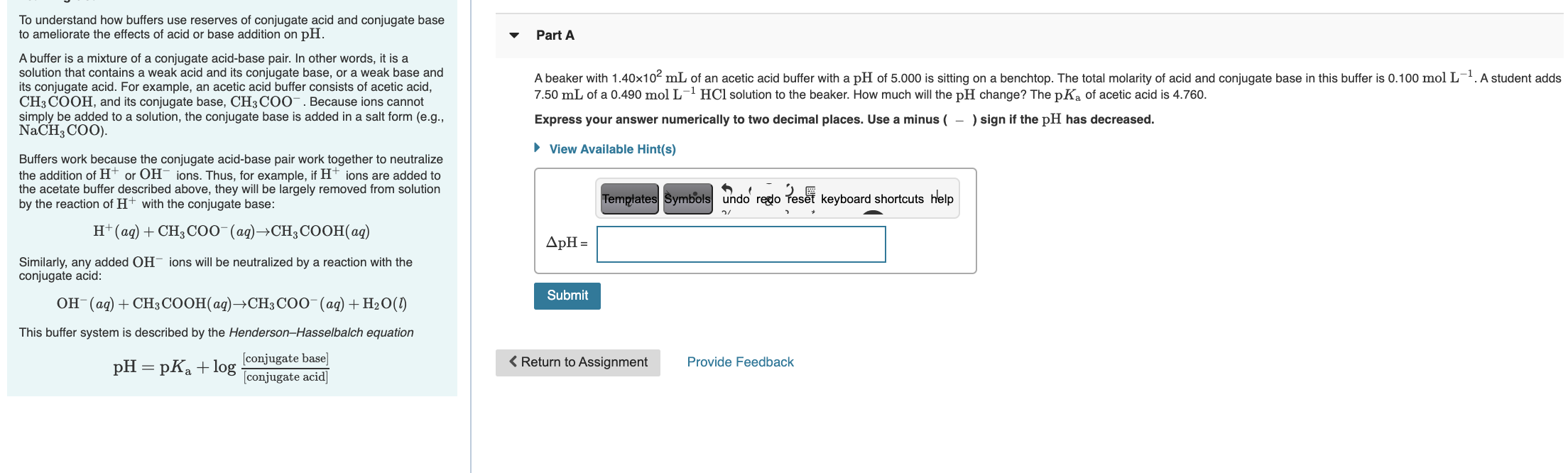 The pH of a buffer consisting of 050 M CH 3 COOH and 050 M CH 3 COONa is 474. More than half of d. PH pKa log A HA The ratio of acetate to acetic acid is given by OAc HOAc.